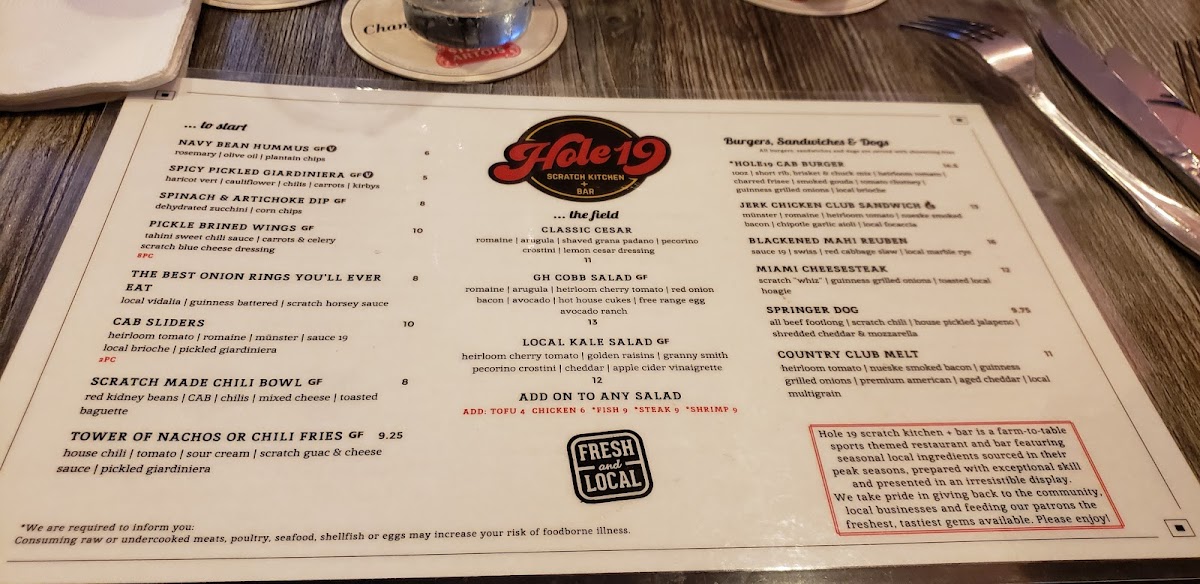Welcome to Hole 19 - Scratch Kitchen Bar, a hidden gem nestled in Miami Springs, Florida. This culinary haven marries classic comfort food with a creative twist, ensuring an unforgettable dining experience. The menu features standout dishes such as the Pan Roasted Half Chicken, accompanied by butter-whipped mash and vibrant roasted carrots, and the indulgent Cast Iron Seared CAB Ribeye—a steak lover's paradise with a bourbon steak sauce.